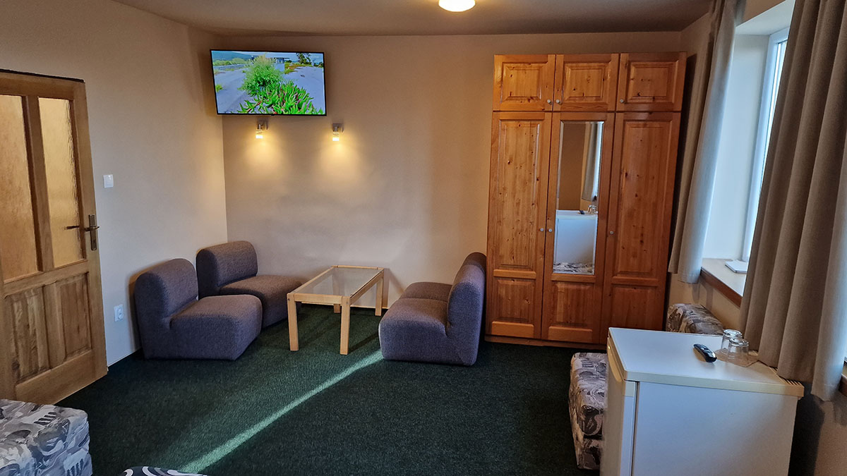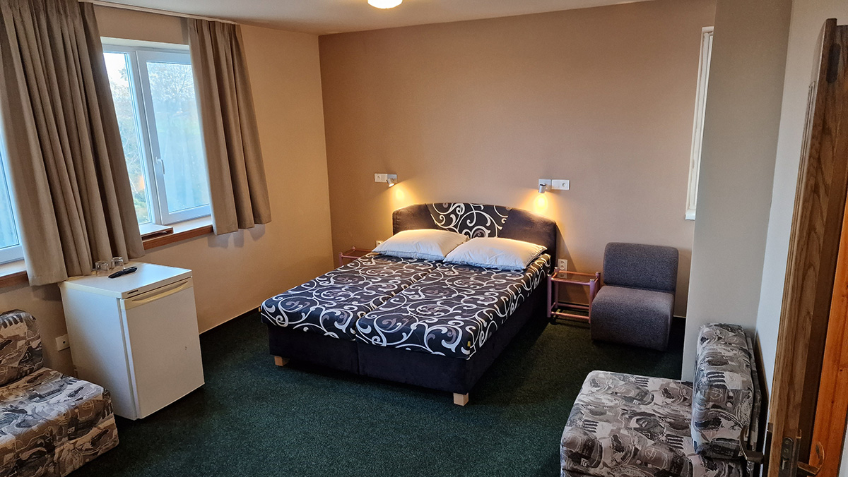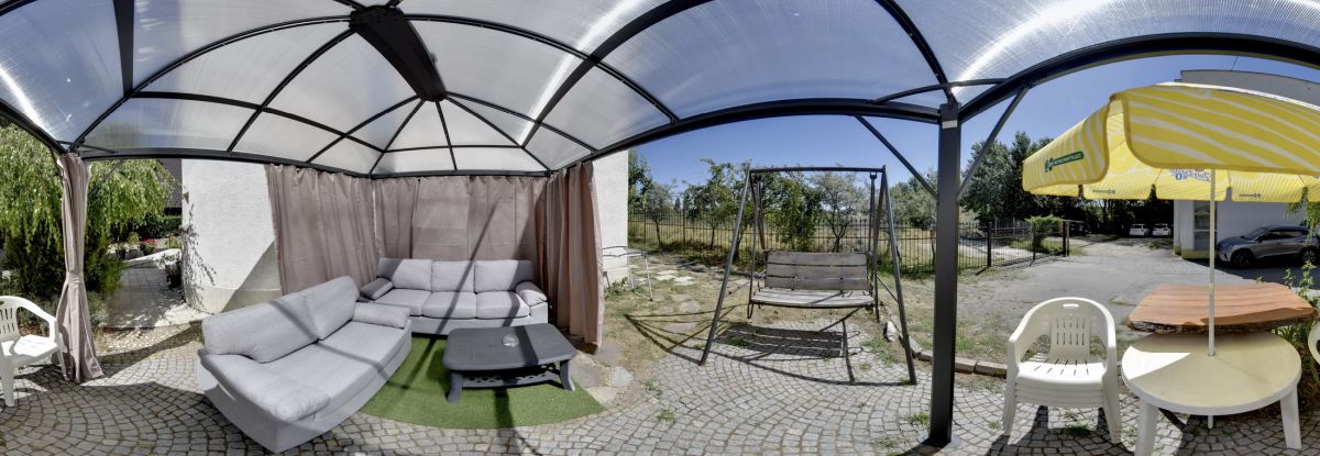 • Letné termálne kúpalisko Patince v pozadí Penzión Bonaparte**